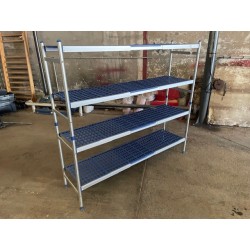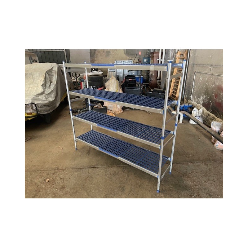 Etagère alimentaire à 4 niveaux en alu + clayette pvc en bon état